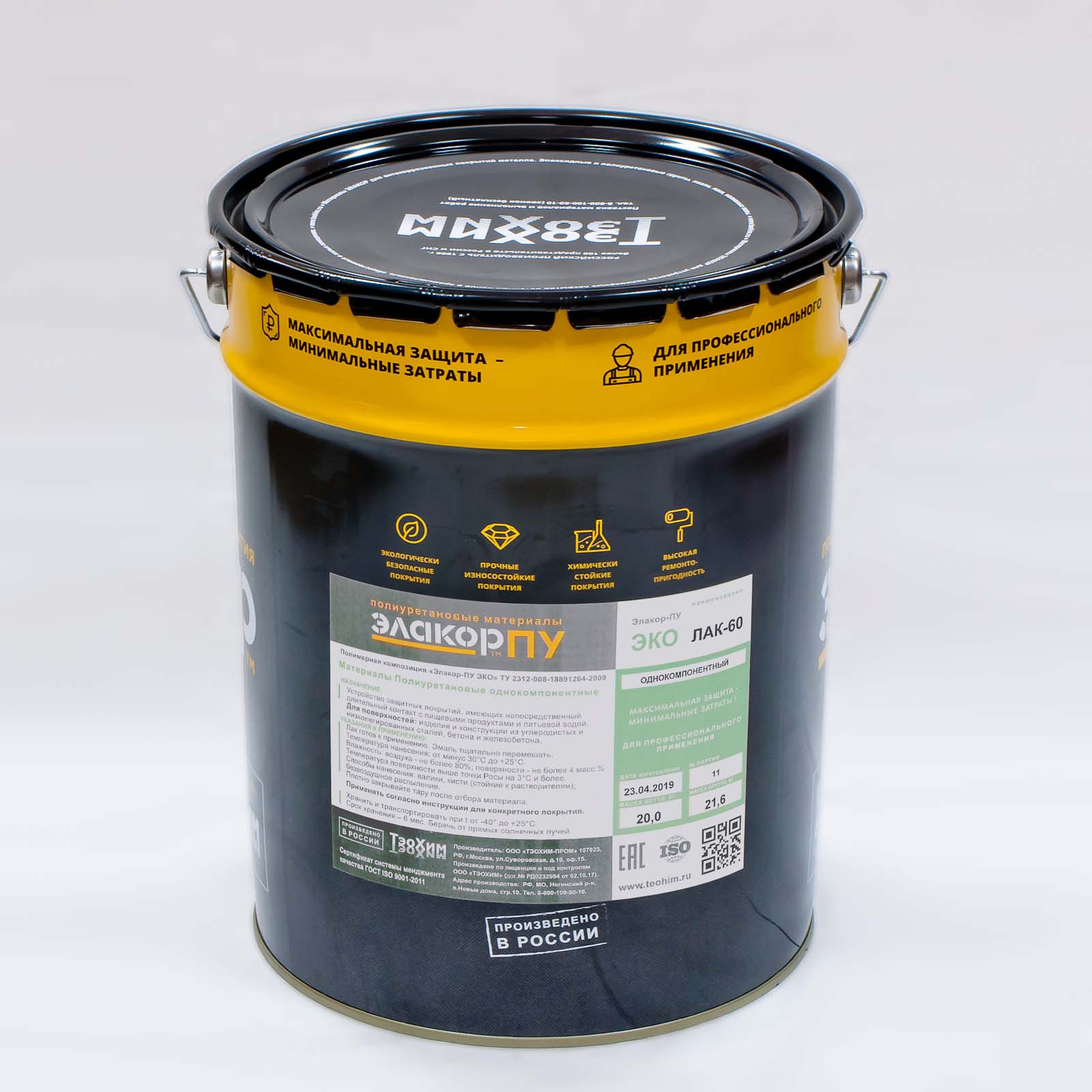 «Эко» Лак-60 Однокомпонентный полиуретановый лак «Элакор-ПУ Эко Лак-60» Для устройства "пищевых" покрытий, находящихся в прямом контакте с пищевыми продуктами и питьевой водой, при температуре до +40°С. Для бетонных и металлических поверхностей. Минимальн